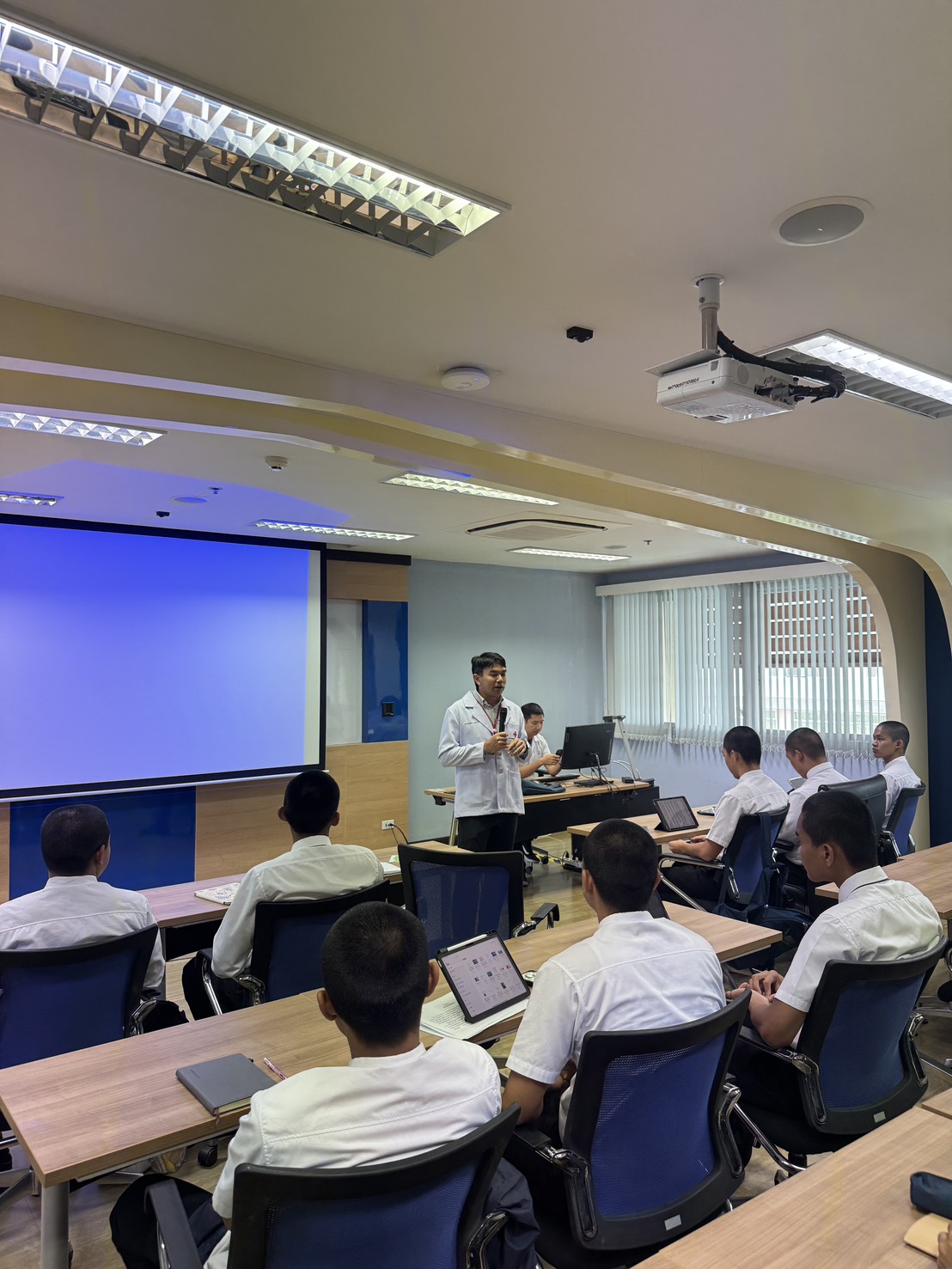 📅 เมื่อวันที่ 9 และ 25 ธันวาคม 2568 โรงพยาบาลสมเด็จพระบรมราชเทวี ณ ศรีราชา นำโดย นพ.ขจรยุทธ บางท่าไม้ ได้จัดโครงการแลกเปลี่ยนเรียนรู้และบรรยายให้ความรู้ ด้านสุขภาพสำหรับคนประจำเรือ โดยทีมแพทย์ประจำบ้าน สาขาเวชศาสตร์ป้องกัน แขนงอาชีวเวชศาสตร์ เพื่อเสริมสร้างความเข้าใจเรื่องการดูแลสุขภาพที่เหมาะสมกับลักษณะงานบนเรือให้แก่นิสิตสาขาวิทยาการเดินเรือ